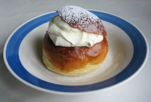Så fort raketerna tystnat och nyårsnatten börjat gå över i gryning händer något. Magen – som en längre tid älskat Jansson, sill, skinka och julgodis – vill plötsligt bara ha semla. Det spelar ingen roll att det finns Ris á la Malta och andra godsaker i hemmet, det är semla eller inget som gäller. Jag har lärt mig att lyssna på magen. Därför är det lika bra att baka semlor. Här kommer mitt bästa recept (grundrecept på bullen är från Sju sorters kakor):