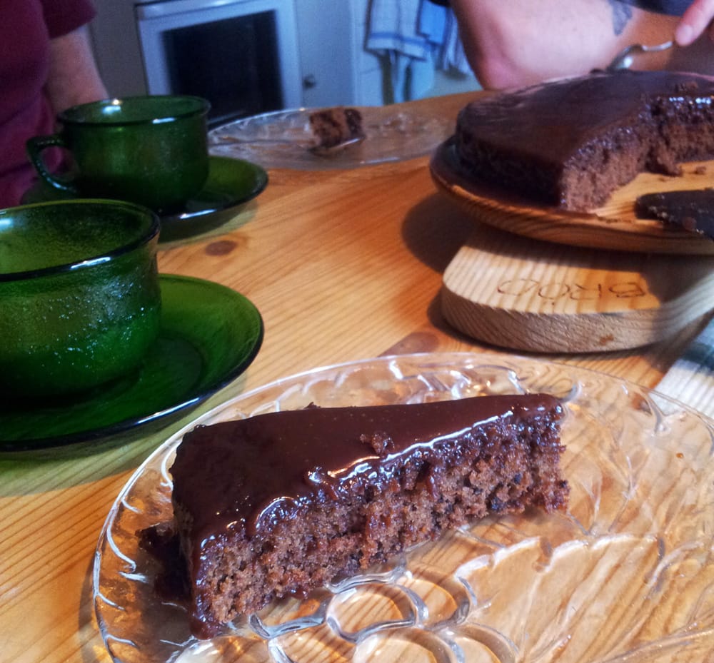 Vi har just smakat på en underbar, kletig, luftig, beroendeframkallande kaka. Jag hittade receptet i en bok, men när jag skrev av det glömde jag både det ena och det andra. Bland annat vad boken heter… Men jag fyllde i luckorna så gott det gick och resultatet blev jättebra. När folk ser kakan få de en drömmande blick och man bara ser att de längtar efter att bli bjudna. Precis som jag vill ha det. Att ha en kaka som alla vill ha är makt 😉