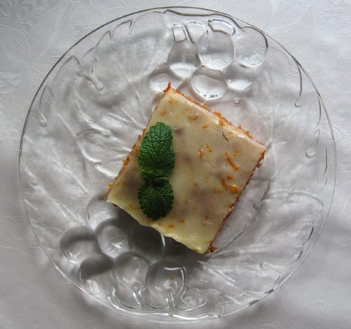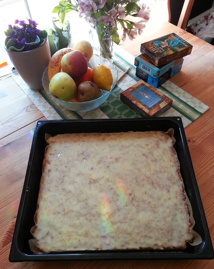 Ibland lockas jag att köpa en veckotidning. Nästan alltid beror det på att tidningen har någon typ av bak-bilaga. Senast var det Allers som frestade mig med ”Nya favoriter i långpanna!”. Nu har jag testat recepten och hittat en favorit som kommer fortsätta finnas på mitt kak-fat. Det var otroligt gott och uppfriskande att ha apelsin i glasyren.