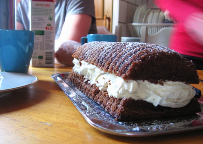 (Ps. På bilden syns gårdagens fotomodell: Chokladtårta med bananfyllning. Jättegod!)