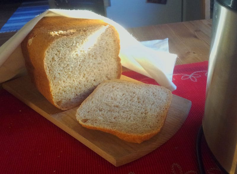 Förra året fick min glutenintoleranta pappa en bakmaskin. Jag hade hört att glutenfritt bröd blir väldigt bra i en sådan och eftersom pappa gillade att baka förr tyckte jag det blev en utmärkt julklapp. Men nu har den stått och samlat damm i nästan ett år. Så igår tog jag tag i saken. Maskinen fick följa med mig hem på en provtur. Först gjorde jag ett vitt formbröd. Det blev väldigt fint i konsistensen (se bilden) men oerhört salt. Nu har jag gett mig på en glutenfri variant. Men det ser illa ut. Brödet jäste dåligt och ser ut att ha sjunkit ihop under gräddningen. Suck. Jag visste att det skulle bli en utmaning så det är bara att göra om och göra rätt. Pappa ska få gott bröd i jul han med. Så det så.
