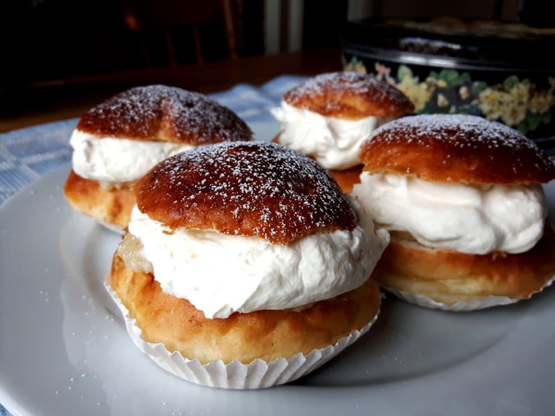 Min pappa har längtat efter semlor i flera år. Vi köpte en glutenfri variant på stans bästa kondis på fetisdagen i år. Men det blev en besvikelse, bullen var kompakt och trist. Så jag gjorde dessa till honom när han fyllde år häromdagen. Han lyste upp som ett barn när han tog en tugga: ”Äntligen en riktig semla!”